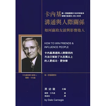 | 搜尋參考資料: 1. 書名:卡內基溝通與人際關係:如何贏取友誼與影響他人﹝2015年新版﹞,原文名稱:how to win friends & influence people,語言 ... www.eslite.com/product.aspx?pgid=1001129512385866 卡內基溝通與人際關係: 如何贏取友誼與影響他人 (2015年新版) How to Win Friends & Influence People 作者 / 戴爾.卡內基 Dale Carnegie poeama.pixnet.net/blog/post/251609320-get-lucky!助你好運... 卡內基溝通與人際關係:如何贏取友誼與影響他人﹝2015年新版﹞ 戴爾卡內基 , 龍齡; 這本書會幫助你達到八個目標 一、跳出 ... www.megbook.com.hk/mall/popularTW/index_3.jsp 《 卡內基溝通與人際關係:如何贏取友誼與影響他人﹝2015年新版﹞ 》 ... 卡內基溝通與人際關係:如何贏取友誼與影響他人﹝2015年新版﹞ |