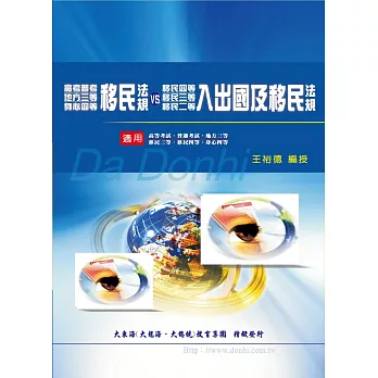 詳細資料ISBN:9789862831199 規格:平裝 / 784頁 / 17 X 23 CM / 普通級/ 單色印刷 / 增修版 出版地:台灣 內容簡介 「移民政策與法規」是高普考戶政必考的專業科目,大東海名師王裕德老師特將內容分門別類,命題焦點提供考生們輕鬆掌握考題方向,重點整理條例分明,利用體系圖表幫考生架構清晰的概念,並搭配精選試題演練,讓學習能完整驗收!最後並附上歷屆試題暨解答再次複習演練,讓您成績突飛猛進,所向披靡! |